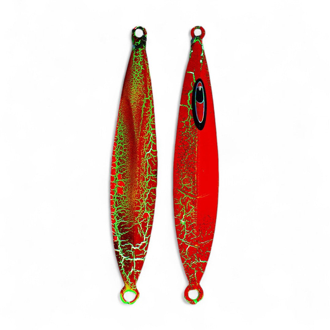 Its standout feature? A cracked-glow paint effect that lights up the deep like lightning through the darkness. The red and black body is wrapped in an extreme glow-in-the-dark pattern, making it deadly in low-light, deep water, or night fishing scenarios.