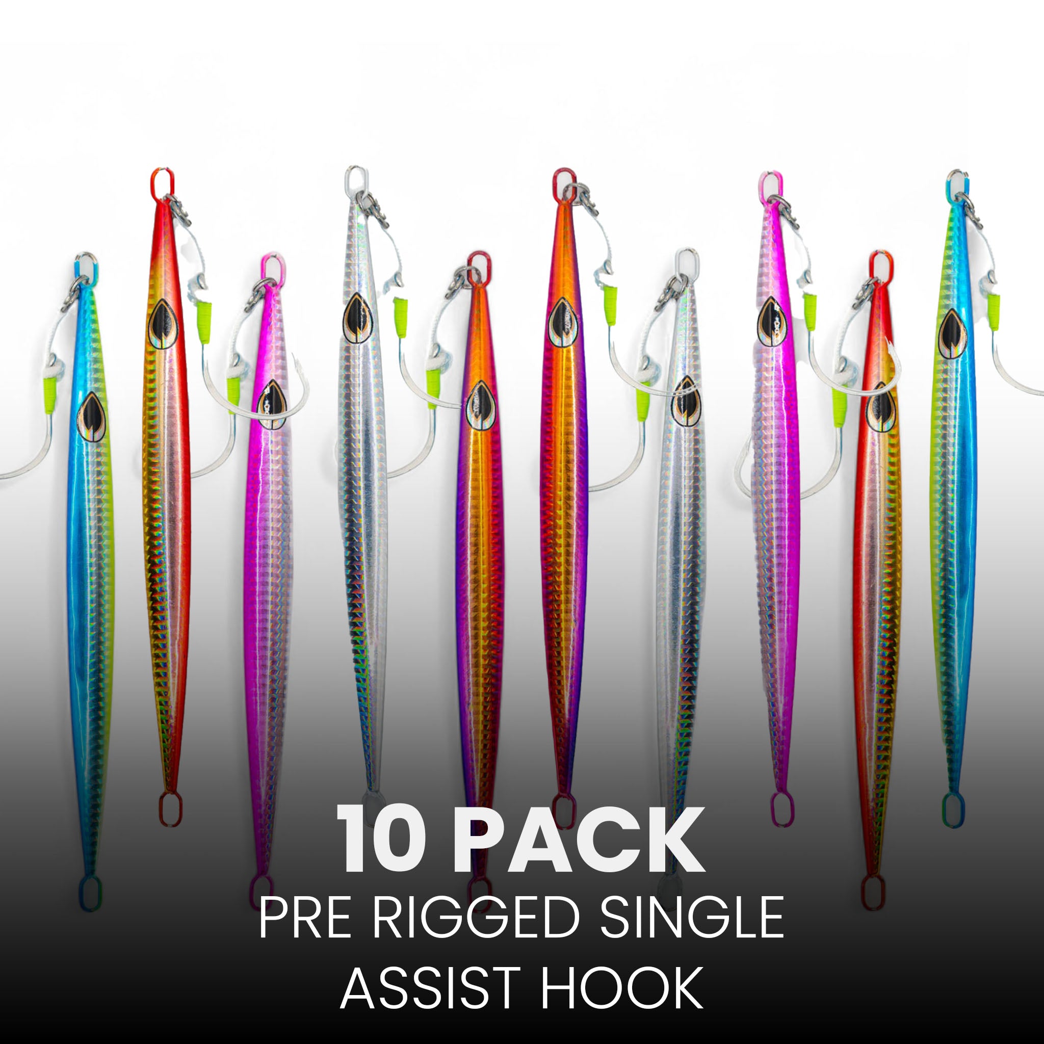 🪝 Single Assist Hook: Comes rigged and ready with a razor-sharp assist hooks for secure hookups at speed.